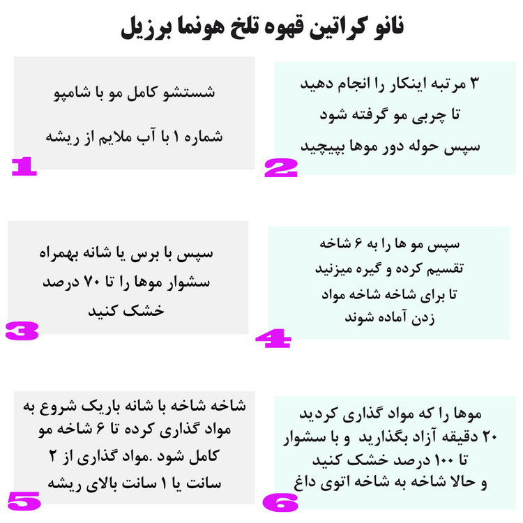 محصولی دیگر از کمپانی هونما است . تاثیر زیادی در رفع زبری و خشکی مو دارد . محصولی کاملا ارگانیک است . مناسب برای موهای آسیب دیده و دکلره شده و کشسان میباشد. برای درمان موهایی آسیب دیده و سوخته شده در اثر دکلره و موهایی که کوتیکول آن ها در اثر فرایند شیمیایی از بین رفته از هونما قهوه تلخ استفاده کنید . همچنین دارای اثر ضد پیری است که از پیری زودرس مو جلوگیری می کند نانو کراتین هونما قهوه تلخ در ترکیبات خود از عصاره قهوه و عصاره نعناع استفاده کرده و همین باعث میشود آبرسانی بسیار بالایی داشته باشد.